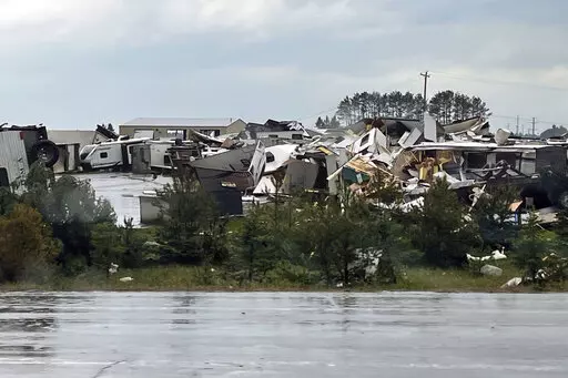Roofs and walls on a busy business stretch were turned to tangled rubble. Mobile homes were destroyed. Tornadoes are so uncommon in northern Michigan that Gaylord doesn't have a siren system to warn people about hazardous weather.