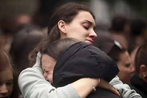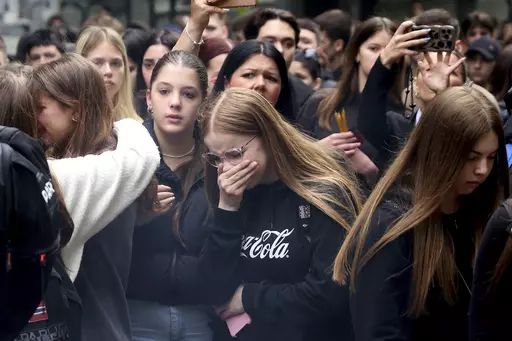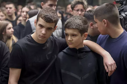 Earlier Thursday, Serbian students, many wearing black and carrying flowers, filled streets around the school in central Belgrade as they paid silent homage to peers killed a day earlier. Thousands lined up to lay flowers, light candles and leave toys to commemorate the nine people who were killed on Wednesday morning.