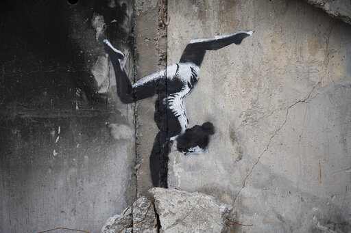A Banksy-like painting, also in black and white and again not confirmed as his by Banksy himself, also appeared on the wall of a war-damaged building in the town of Irpin, on Kyiv's northwestern outskirts.