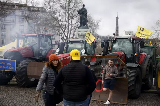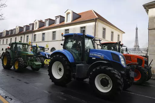 PARIS (AP) — Angry farmers were back in Paris on their tractors in a new protest Friday demanding more government support and simpler regulations, on the eve of a major agricultural fair in the French capital.