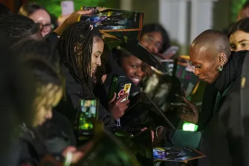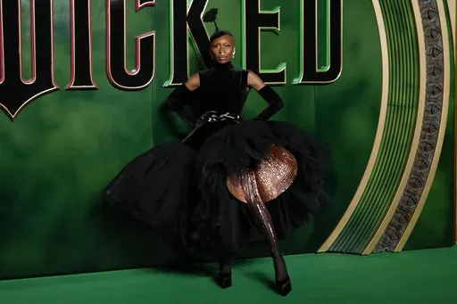 At the Met Gala in May, the duo switched colors during a performance for the lucky dinner guests, with Grande in light green and Erivo in rose. On the carpet, Erivo wore black festooned with pink flowers, a nod to her co-star.