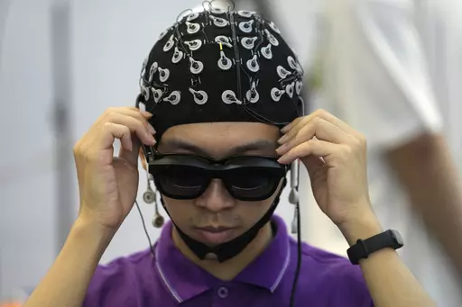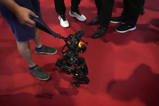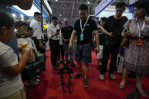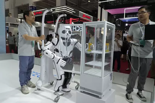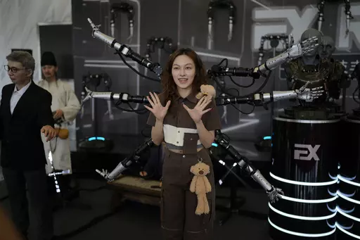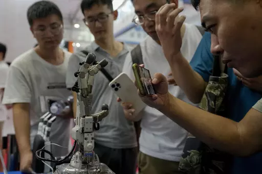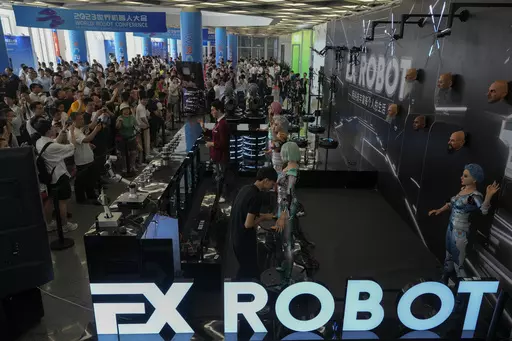 BEIJING (AP) — Winking, grimacing or nodding their heads, robots mimicked the expressions of visitors at a robot expo in Beijing.