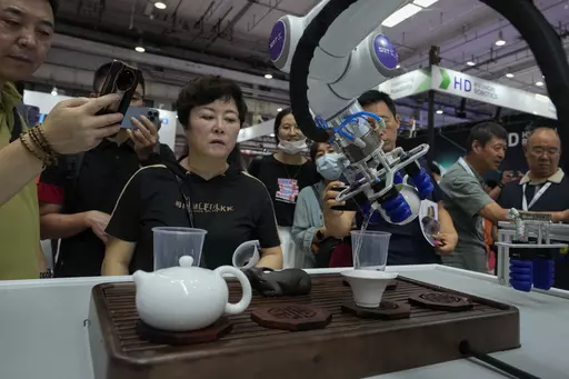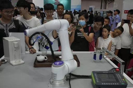 Elsewhere at the fair, robotic arms served Chinese tea, prepared ice cream cones, bounced ping pong balls and gave visitors back massages.