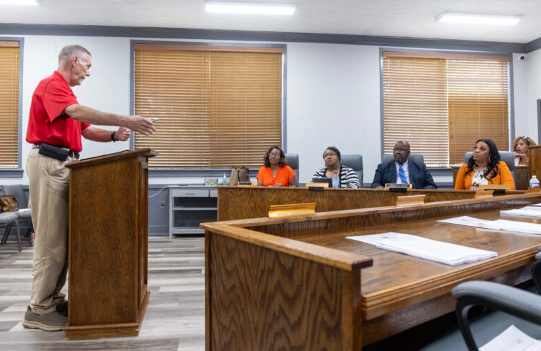 Jeff Goodwin, director of the state auditor’s compliance division, speaks to the Canton Board of Aldermen during a meeting at Canton City Hall in Canton, Miss., on Tuesday, Aug. 5, 2025. Credit: Eric Shelton/Mississippi Today