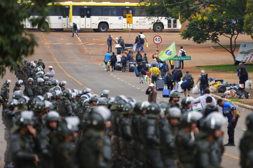 Justice Minister Flávio Dino told reporters that police have begun tracking those who paid for the buses that transported protesters to the capital. Speaking Monday at a news conference, he said rioters apparently intended for their displays to create a domino effect nationwide, and that they could be charged with a range of offenses, including organized crime, staging a coup and violent abolition of the democratic rule of law.
