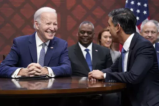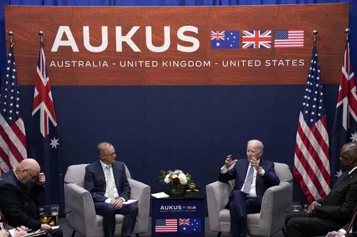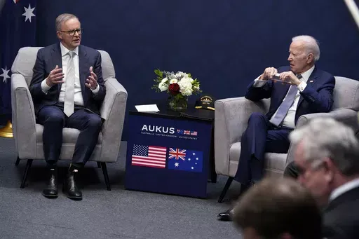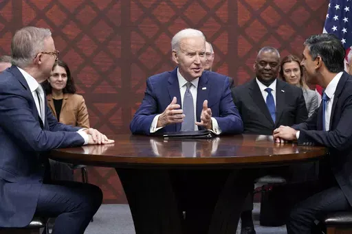 Biden flew to San Diego to appear with Australian Prime Minister Anthony Albanese and British Prime Minister Rishi Sunak as they hailed an 18-month-old nuclear partnership given the acronym AUKUS — for Australia, the United Kingdom and the United States.