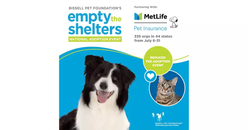 “We are excited to team up with MetLife Pet Insurance to offer 30 days of pet insurance at no cost to the adopter, as well as the opportunity to purchase an annual pet insurance policy, which could make a difference in helping adopters deal with their pet’s unexpected illness or injury," said Cathy Bissell, Founder of BISSELL Pet Foundation. "Veterinary costs add up quickly, and too often, pet owners forgo care or surrender their beloved pets when they can't afford treatment. This collaboration could help to enable more pets in more communities to be adopted through 'Empty the Shelters' and can help facilitate adopters seeking treatment to keep their pets healthy and in their new homes.”