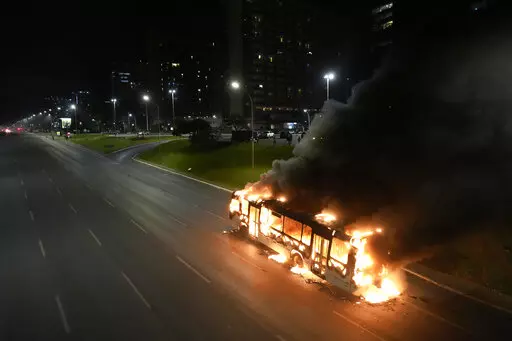RIO DE JANEIRO (AP) — Supporters of Brazilian President Jair Bolsonaro clashed with police Monday, setting fire to several vehicles and allegedly attempting to invade the federal police’s headquarters in capital city Brasilia.