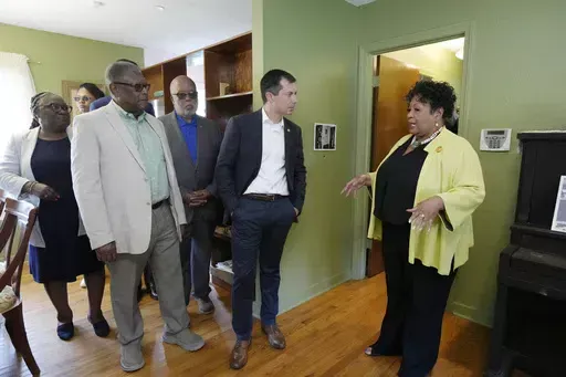 JACKSON, Miss. (AP) — Transportation Secretary Pete Buttigieg on Friday toured the home of assassinated civil rights leader Medgar Evers in Mississippi's capital city, saying afterward that transportation is important to securing equity and justice in the United States.