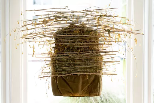 The Olderbrother store in Los Angeles is decorated with a huge panel of the plant's stalks, leaves and flowers that were woven on a loom by designer Cecilia Bordarampe. The material came from the first harvest when Kingery said his team initially harvested about 450 pounds (204 kilograms) to make the dye. They have continued, removing more than a 100 pounds (45 kilograms) a week ever since, mostly from public land in Los Angeles.