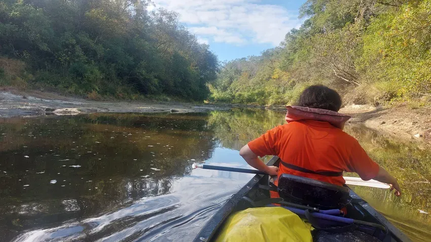 Tommy and his 12-year-old son Dawson drove six hours from Houston. My son John, 29, and I drove two hours and 45 minutes from Jackson. We met the owner of Wolf River Adventure Paddling, Alan, and left our vehicles at the Cable Bridge Road take out point. Alan then drove us and the rented canoes north to the put in point on the Highway 53 bridge. We had 13 miles to paddle, about eight hours on the water.