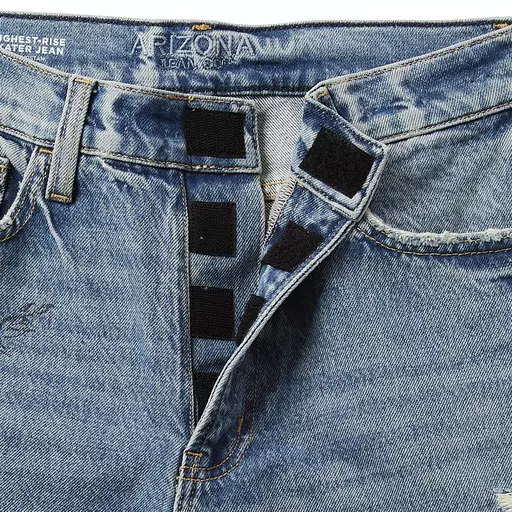She put strips of fabric fastener on the inseams of the jeans, and she replaced the button and zipper on the front with the same. The difference to Oliver was immense.
