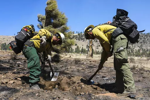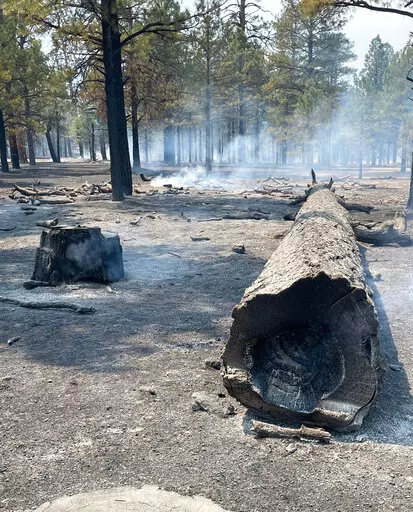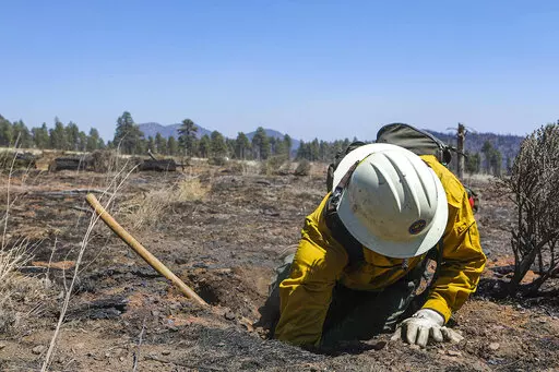 FLAGSTAFF, Ariz. (AP) — Firefighters fanned out across blackened landscape in Arizona’s high country, digging into the ground to put out smoldering tree stumps and roots as helicopters buzzed overhead with buckets of water to drop on a massive blaze.
