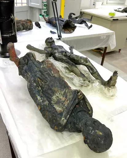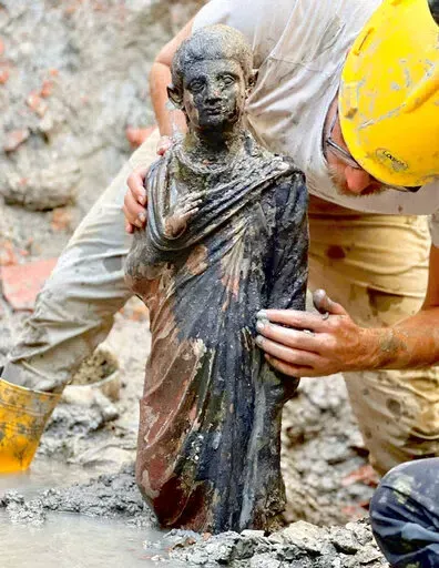 ROME (AP) — Italian authorities on Tuesday announced the extraordinary discovery of 2,000-year-old bronze statues in an ancient Tuscan thermal spring and said the find will “rewrite history” about the transition from the Etruscan civilization to the Roman Empire.