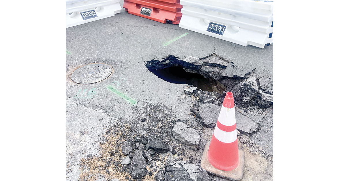 “The city has been lining the sewers for years, and that part of town is the only part that hasn’t been lined,” continued Reeves. “A few weeks ago, we had trucks around that area working on the sewers, and they were doing camera inspections. Running a camera through the sewer to find any problem areas that need to be lined is the first part of the lining project. They’ll push a flexible liner through and then run a UV light through it. It has an epoxy on it, so the UV light hardens the epoxy. It’s basically just like PVC. Once they do that process, the liner smooths out anywhere that there are breaks or issues to make it a solid piece of pipe. The pipe that is in there now is clay and has been there since the 50s or 60s. We were in the process of trying to get that part of town done since it hasn’t been done yet, but we’re just a little bit too late. We’ve had issues with that intersection for 15 years with having little cave-ins in the street, leaks, and stuff. I think over the years they’ve just patched them, and this one isn’t patchable. We’ve had a hard time getting grant money for that area of town because the income level is a little higher in those parts of town. A lot of our grant money is focused on low income areas.”