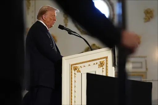 Dozens of supporters, many clad in pro-Trump gear, stood near their seats and craned their necks to see if the GOP nominee and former president were about to enter an ornate Mar-a-Lago room set up for his remarks.