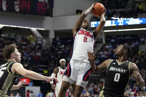 The Rebels trailed 7-6 early before scoring 13 consecutive points over a 2:36 stretch to take control. Bryant didn't get within single digits again. Doug Edert and Gross-Bullocks hit back-to-back 3s to cut it to 70-60 with 7:38 left, but the Bulldogs couldn't muster a real threat.