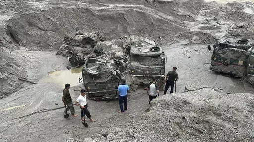 The floods also hit several army camps, burying vehicles in feet of mud, according to images released by the Indian military.