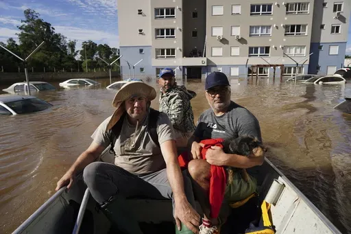 Animal protection groups and volunteers have shared images of difficult rescues and heartwarming scenes of pets reuniting with their owners on social media. One video that went viral showed a man crying inside a boat, hugging his four dogs after rescuers went back to his home to save them. The images have spurred Brazilians to send donations and brought veterinarians to the region.