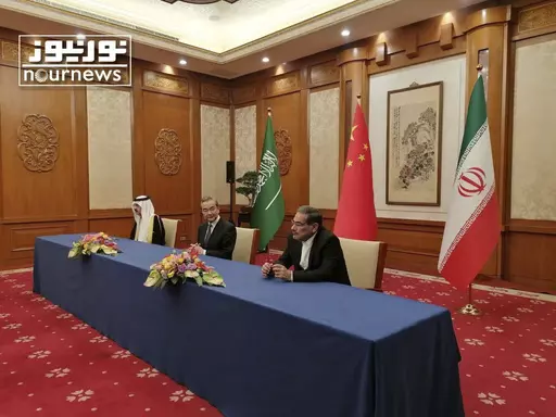 Videos showed Ali Shamkhani, the secretary of Iran’s Supreme National Security Council, meeting with Saudi national security adviser Musaad bin Mohammed al-Aiban and Wang Yi, China's most senior diplomat.