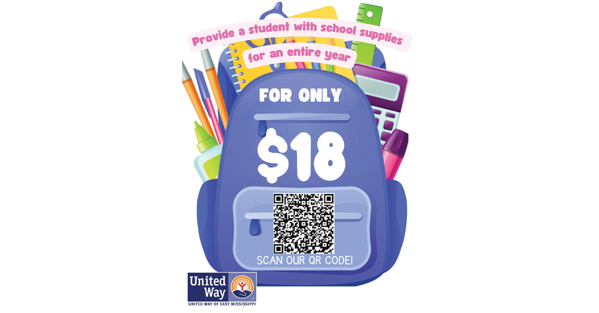 This year, United Way is also offering a unique opportunity to fill a book bag for a child. For only $18, a student can be provided with school supplies for an entire year. Simply scan the QR code to donate the $18 and fill a book bag.