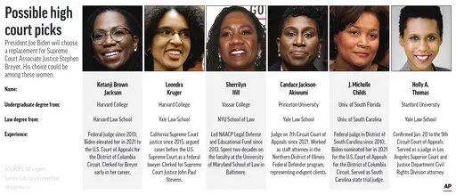 Jackson has a background similar to justices on the court and had attracted Obama's attention as a possible nominee in 2016. She went to college and law school at Harvard. She also spent a year early in her career serving as a law clerk to Breyer.