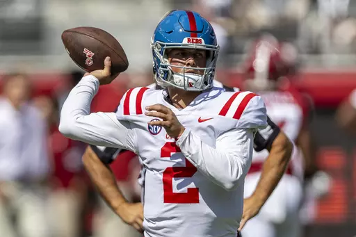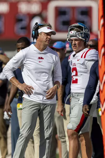 Milroe completed 17 of 21 passes for 225 yards with a touchdown and an interception. He also had runs of 20 and 18 yards on the opening drive before the Rebels wiped out most of those gains with four sacks.