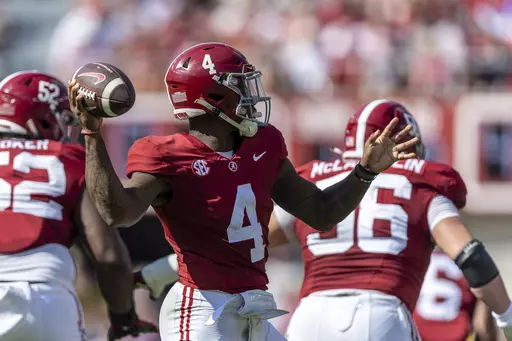 TUSCALOOSA, Ala. (AP) — Jalen Milroe was planted on his back just after he delivered his biggest pass of the season.