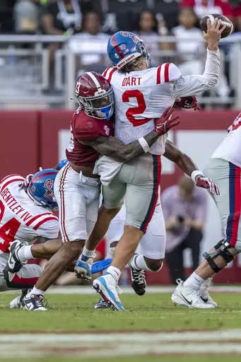 Ole Miss: An offense that had been prolific against lesser competition — and then-No. 22 Tulane — couldn't solve the Alabama defense or protect Dart.