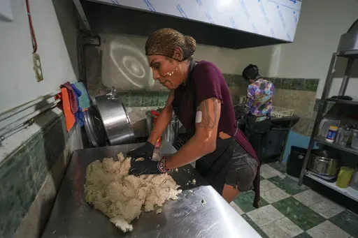 MEXICO CITY (AP) — Karolina Long Tain González Rodríguez plops another corn cake into the piping hot oil of a large pan. As she grabs a set of tongs to flip them one by one, she yells across the kitchen realizing she’s pressed for time.