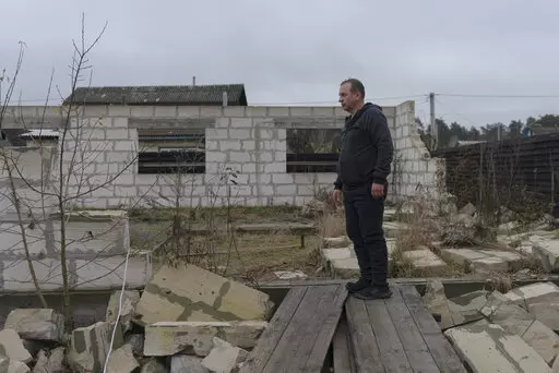 MOSCHUN, Ukraine (AP) — Standing amid the wreckage of his home, Vadym Zherdetsky shows photos on his phone of how it once looked: handsome rooms, a hand-carved wooden bed and a chest of drawers he intended to leave to his grandchildren.