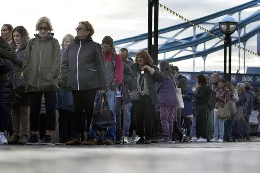 LONDON — Thousands of mourners are standing in line for at least 14 hours to see Queen Elizabeth II’s coffin while she lies in state in London.