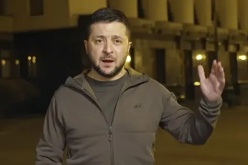 LVIV, Ukraine — With the war headed into its second month, Ukrainian President Volodymyr Zelenskyy spoke of hope and determination in his nighttime video address to the nation late Thursday.