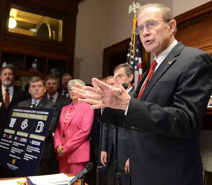 Flanked by Republican senators, Hosemann said the Senate plan would cut taxes over the next four years while allowing the Legislature to spend tax dollars on core government functions such as public education.
