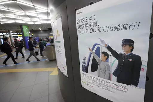 Tokyu Railways' trains running through Shibuya and other stations were switched to power generated only by solar and other renewable sources starting April 1.