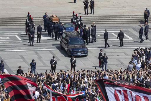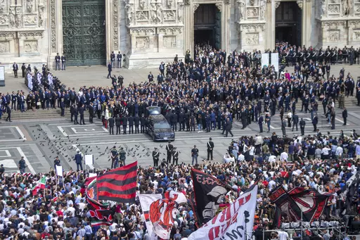 But critics, including some in the political opposition, stayed away from the funeral, while thousands of admirers filled the central piazza. They included fans of the clubs Berlusconi nurtured, AC Milan and AC Monza, who waved enormous banners as Berlusconi’s casket entered the cathedral. As it exited, they chanted affectionately: “Berlusconi is one of us."