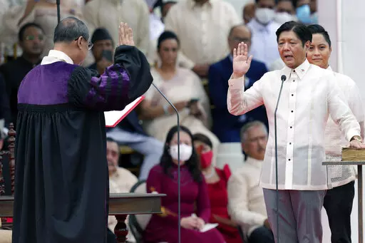 MANILA, Philippines (AP) — Ferdinand Marcos Jr., the namesake son of an ousted dictator, praised his father's legacy and glossed over its violent past as he was sworn in as Philippine president Thursday after a stunning election victory that opponents say was pulled off by whitewashing his family’s image.