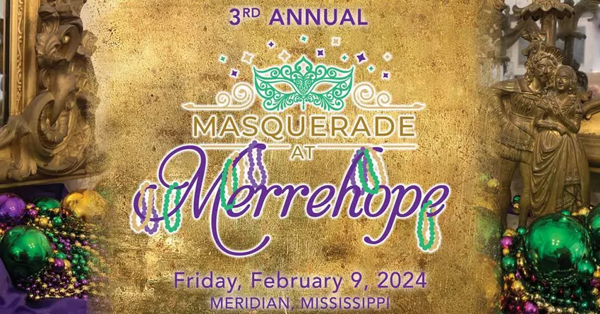 Merrehope is lookin’ snazzy and feelin’ jazzy all dressed up in Mardi Gras attire. The historic 20 room Neoclassical Revival mansion is simply spectacular. On Friday, February 9, she’ll be ready for the Third Annual Masquerade at Merrehope that has established itself as Meridian’s Mardi Gras Pre-Parade Party. Decorators are claiming that it will be the most blinged-out year yet.