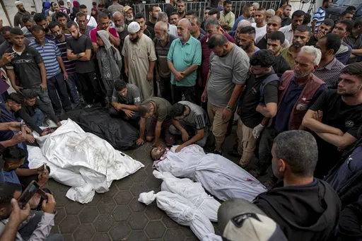 Two strikes hit houses in the built-up Bureij refugee camp, which dates back to the 1948 war surrounding Israel’s creation. An Associated Press journalist counted 21 bodies on Monday, along with about a dozen wounded, including several children.