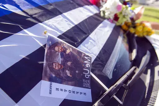The two officers will be buried in a joint funeral on Wednesday in Bay St. Louis, even as tributes to their service continue. Hundreds of people gathered for a candlelight vigil Thursday at a high school in Bay St. Louis, a city of 10,000 people about 25 miles (40 kilometers) west of Biloxi. They included Robin's wife, Estorffe's father and sister, and other relatives.