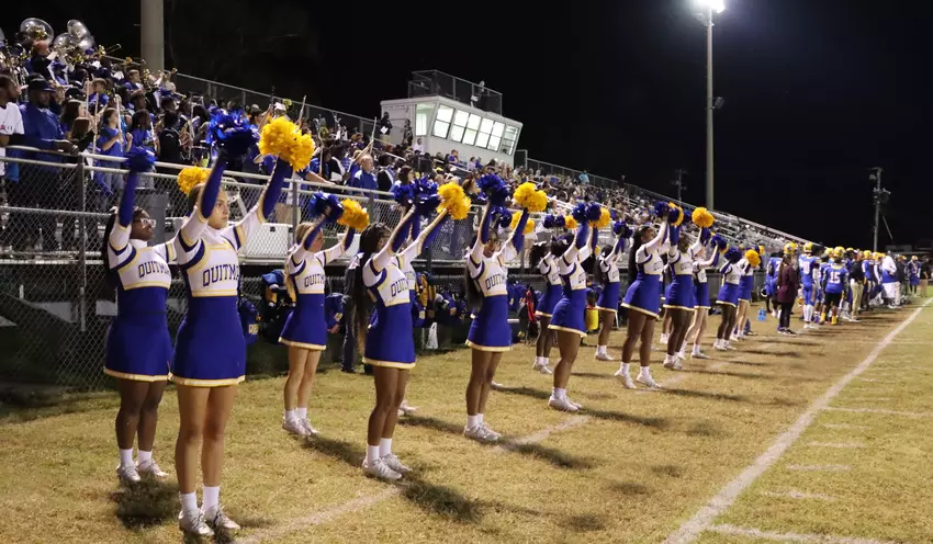 In honor of the Veterans who’ve served our country in one of the many branches of the United States Military, the Quitman High School Big Blue Crew played “My Country Tis of Thee” as Veteran spectators of the game joined the Veterans on the Field to wave the American flag.