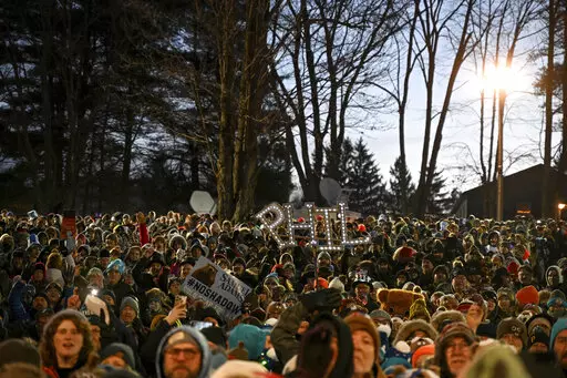 People gathered Thursday at Gobbler’s Knob as members of Punxsutawney Phil’s “inner circle” summoned the groundhog from his tree stump at dawn to learn if he has seen his shadow — and they say he did. According to folklore, if he sees his shadow there will be six more weeks of winter. If he doesn’t, spring comes early.