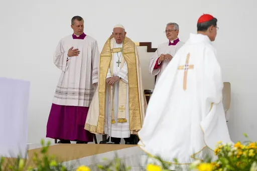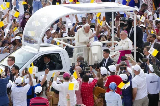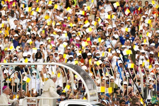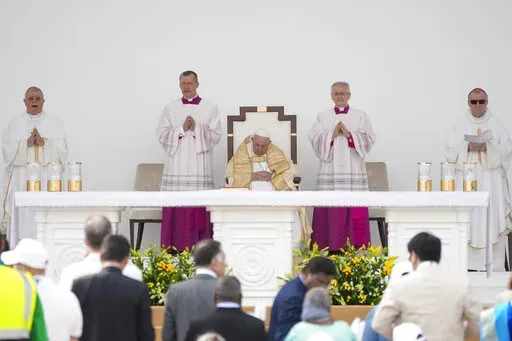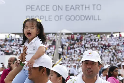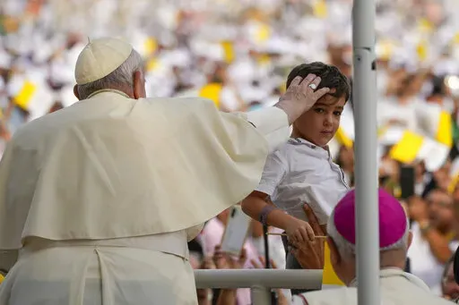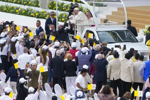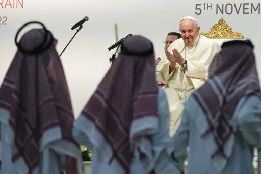 MANAMA, Bahrain (AP) — Pope Francis shifted gears Saturday in his visit to Bahrain to minister to the Gulf's Catholic community, presiding over a huge open-air Mass and then meeting with young people to give them a bit of fatherly advice: Don’t just Google your questions about life decisions, he told them. Instead, find a parent, teacher or grandparent who can offer guidance.