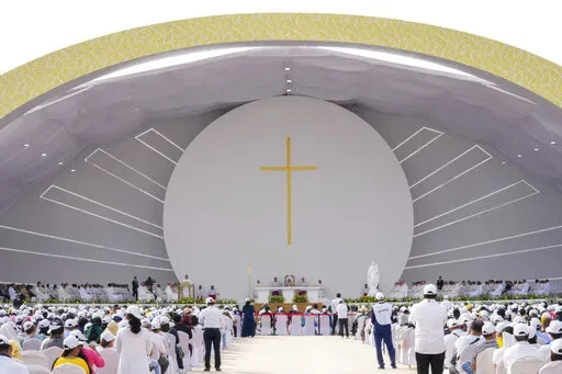 An estimated 30,000 people, some traveling from Saudi Arabia, Kuwait and other Gulf countries, packed the Bahrain national stadium for Francis’ big Mass. The English-language liturgy was clearly geared toward the foreign workers, with popular English hymns and prayers in Malay, Tagalog and Tamil and a priest offering English translations of the pope’s native Spanish homily.