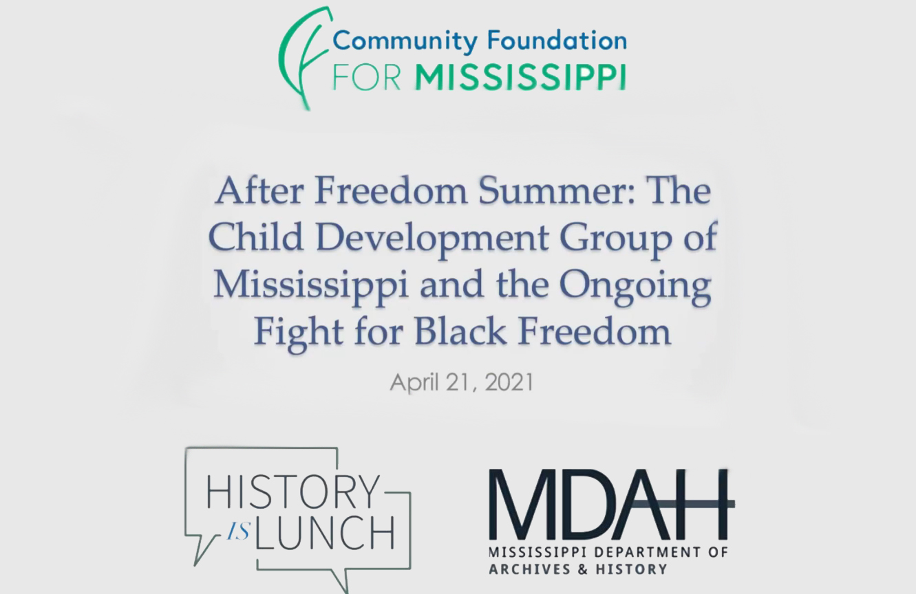 On April 21, 2021, Crystal R. Sanders presented “After Freedom Summer: The Child Development Group of Mississippi and the Ongoing Fight for Black Freedom” as part of the History Is Lunch series.