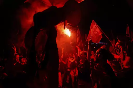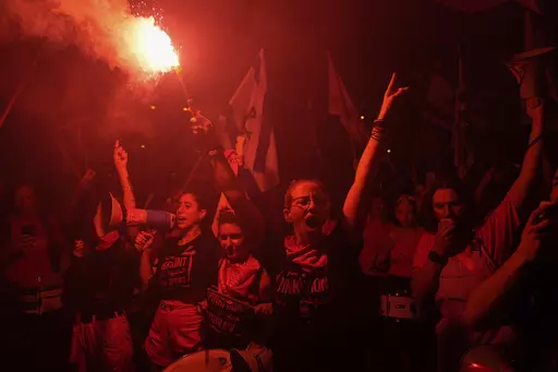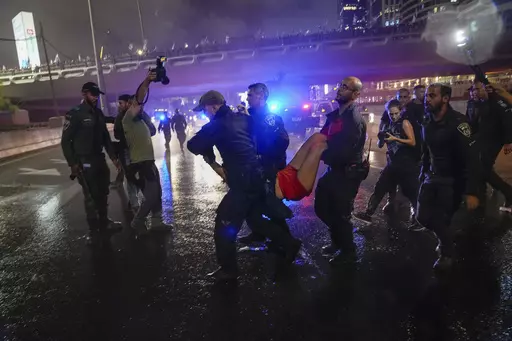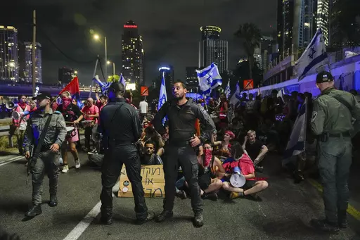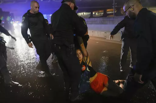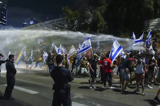 Some 150,000 people thronged central Tel Aviv, with large rallies in Jerusalem and other major cities. Late Saturday, dozens of people attempted to block Tel Aviv's main highway, but they were quickly cleared away by police. Scuffles broke out, and police sprayed a water cannon at the crowd.