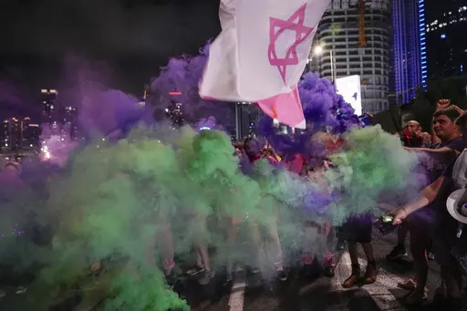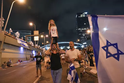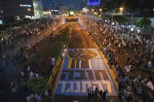 TEL AVIV, Israel (AP) — Israel's anti-government protest movement gained new momentum on Saturday night as tens of thousands of people spilled into the streets of cities across the country to oppose Prime Minister Benjamin Netanyahu's contentious plan to overhaul the judicial system.
