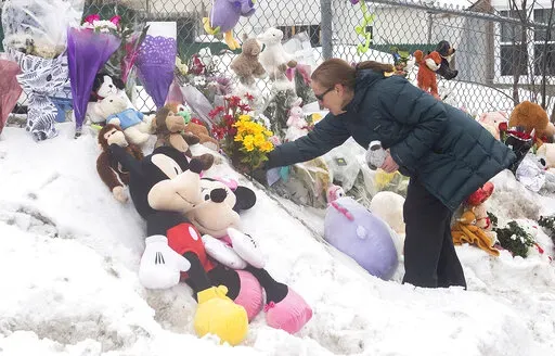People, many in tears, stopped by to pay their respects and add to the growing memorial of flowers and stuffed toys in a snowbank outside the center where two 4-year-olds died in the incident.