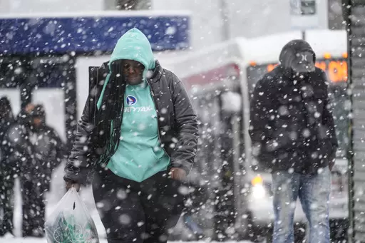 HARTFORD, Conn. (AP) — A quick-moving winter storm battered cities in the Northeast with snowfall, sending huge waves crashing into the New England coastline and forcing New York City schools into glitch-filled remote learning reminiscent of the early days of the pandemic.