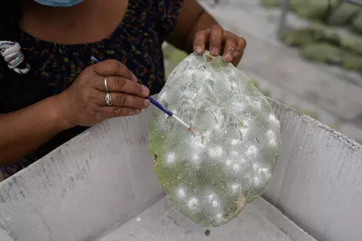 “You have to wait three or four months for them to complete their life cycle, and then we harvest,” Garcia said. “You have to keep monitoring and watching every cactus pad.”